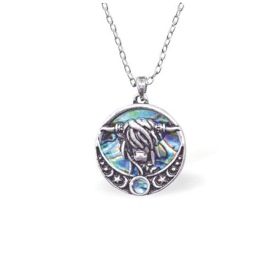 These pretty earrings feature the kyloe cow and are edged with moon and stars detailing.