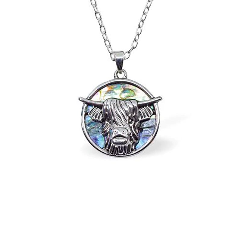 Paua Shell Long Horn Highland Cow Necklace